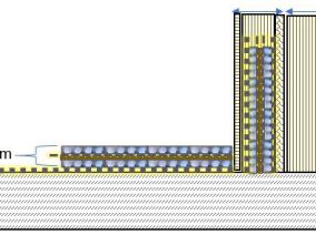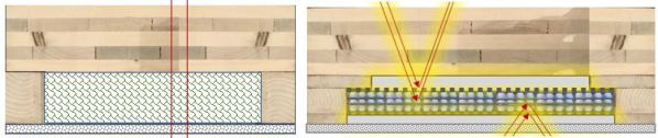 und dazwischen 2 Lagen (20 mm) Abstandshalter/tragend.